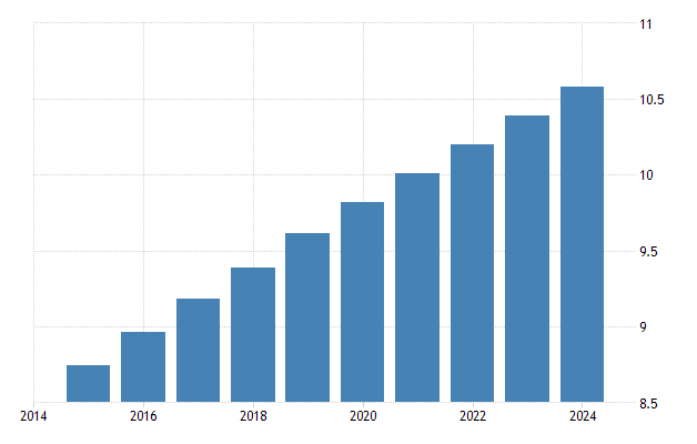 As of January 2025, Guinea’s total population stood at approximately 14.9 million, reflecting a 2.4% year‑on‑year increase, with about 38.7% living in urban areas and 61.3% in rural areas, and a nearly even gender distribution (50.5% female, 49.5% male) The median age was 18.3 years, with age groups ranging from 14.8% aged 0–4, 21.0% aged 5–12, 11.4% aged 13–17, 13.5% aged 18–24, 15.6% aged 25–34, 9.9% aged 35–44, 6.0% aged 45–54, 4.2% aged 55–64, and 3.5% aged 65+.The total fertility rate hovered around 4.0 births per woman, life expectancy was roughly 61.1 years (62.3 for women, 59.8 for men), and infant mortality stood near 63.8 per 1,000 live births, with under‑5 mortality around 90.9 per 1,000 . Meanwhile, age‑structure data indicate that about 41% are aged 0–14, ≈55% are 15–64, and ~4% are 65+, leading to a youth dependency ratio of about 76 and total dependency of roughly 82 per 100 working‑age adults.