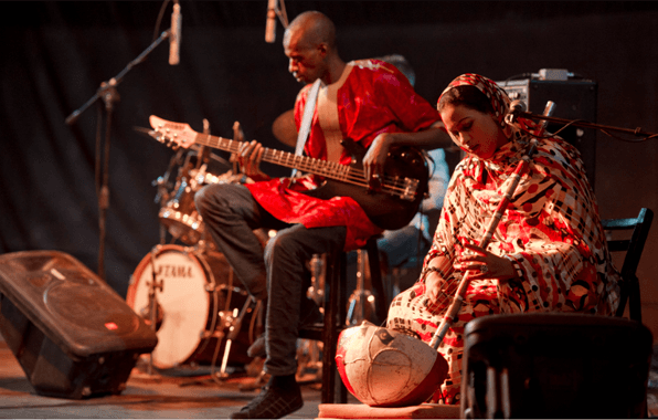 Music in Mauritania is a rich cultural tradition deeply tied to the country's nomadic and Islamic heritage. It is dominated by the griot tradition, where professional musicians and storytellers preserve history, poetry, and cultural values through song. Mauritanian music is typically performed using traditional instruments like the ardin (a harp-like instrument played by women), the tidinit (a four-stringed lute), and various drums. The music follows a unique modal system known as pentatonic modes and often includes poetic lyrics that reflect social issues, history, or praise. Griots (also known as iggawin) hold a special status in society and perform at weddings, naming ceremonies, and other communal events. While modern styles and instruments are slowly influencing the scene, traditional Mauritanian music remains a vital part of national identity and cultural expression.