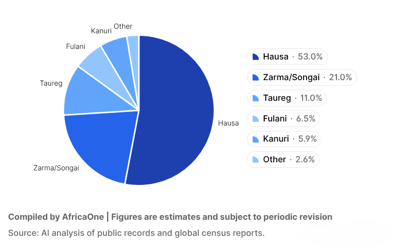 Niger is home to a mosaic of ethnic groups, each contributing to the country's cultural richness and social fabric. The largest group is the Hausa, who make up about half the population and are predominantly found in the south; they are known for their strong trade networks, Islamic scholarship, and vibrant cultural traditions. The Zarma-Songhai, primarily located in the west around the capital Niamey, are the second-largest group and are traditionally farmers and fishermen. The Tuareg, a nomadic Berber people, inhabit the arid northern regions and are known for their camel caravans, desert lifestyle, and distinctive indigo-dyed clothing. The Fulani (or Peulh), widespread across the Sahel, are mainly pastoralists and are known for their mobility and strong oral traditions. The Kanuri, found near Lake Chad in the east, have a long history of Islamic empires and scholarship. Other smaller groups include the Toubou, Gurma, and Arab minorities. Despite ethnic diversity, most of Niger’s groups are united by Islam and shared Sahelian traditions.