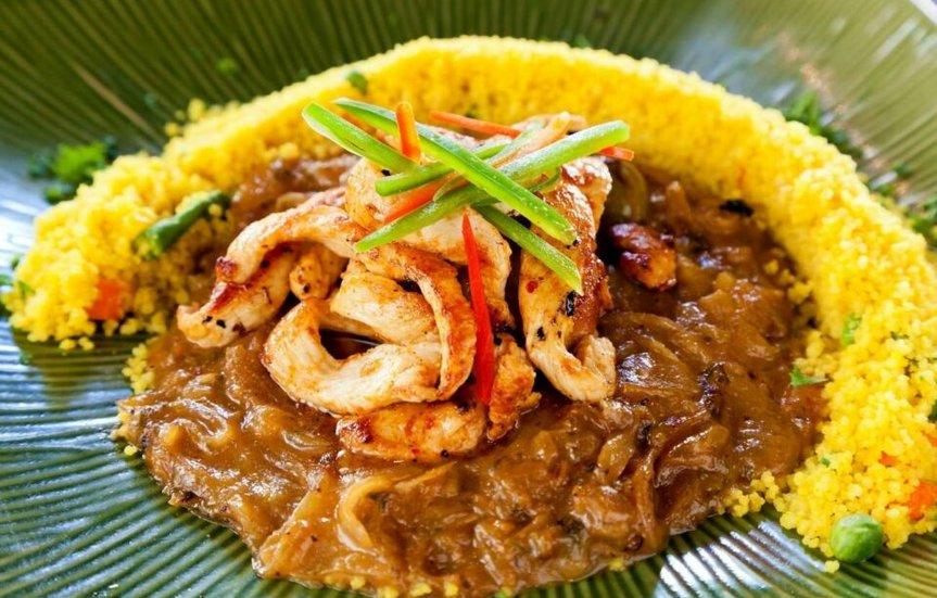 Senegalese cuisine is flavorful and diverse, blending influences from West African, French, and Arabic traditions. Staple ingredients include rice, millet, fish, and a variety of vegetables and spices. One of the most famous dishes is thieboudienne (or ceebu jën), a flavorful fish and rice dish cooked with tomato sauce and vegetables. Other popular meals include yassa, marinated grilled chicken or fish with onions and lemon sauce, and mafé, a rich peanut stew often served with rice. Senegalese food is known for its bold, tangy, and spicy flavors, often accompanied by traditional breads like fataya and fresh fruit. Communal eating and sharing meals are important social customs in Senegalese culture.