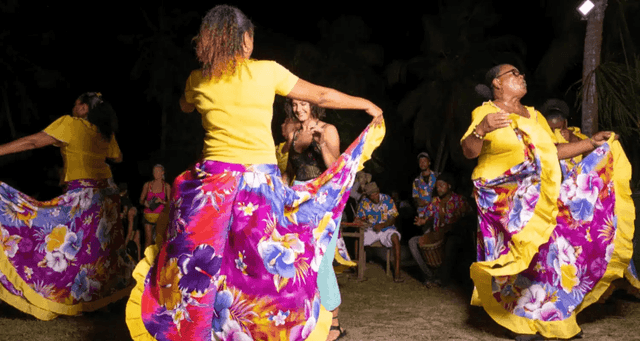 Instruments like drums, guitars, accordions, and banjos are often used, creating lively, rhythmic sounds. Songs are typically performed in Seychellois Creole and often tell stories about daily life, love, and the sea.