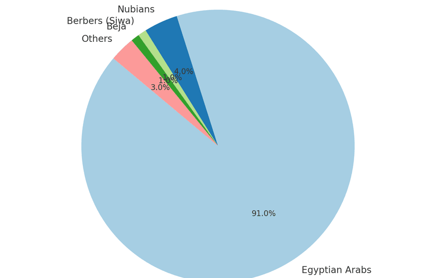Egypt’s population is ethnically homogeneous, with the vast majority identifying as ethnic Egyptians, who are primarily of ancient Egyptian, Arab, and some Mediterranean descent. However, there are several minority groups that contribute to the country’s cultural diversity. Nubians, living mainly in southern Egypt near Aswan, have distinct languages and traditions rooted in ancient Nubia. The Bedouins, nomadic Arab tribes in the Sinai Peninsula and parts of the Eastern and Western Deserts, maintain unique customs and tribal structures. Other smaller groups include the Beja in the southeast and communities of Berbers, Dom (Gypsies), and descendants of sub-Saharan Africans. Though small in number, these groups play an important role in Egypt’s cultural mosaic.