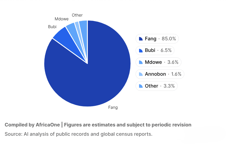 The country is ethnically diverse, with the Fang forming the majority over 80% of the population. They are split between mainland and Bioko-based subgroups and dominate politics and public life. The Bubi, indigenous to Bioko Island, maintain a strong cultural identity and language, although they have often been politically marginalized. Other groups include the Ndowe (coastal communities), the Annobonese (with Portuguese and Angolan roots), and small foreign communities (mainly from Nigeria, Cameroon, and Spain). Ethnic identity plays a significant role in politics, social cohesion, and community structure.