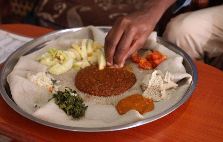 Ethiopian cuisine is known for its rich flavors and communal dining style. Injera, a sourdough flatbread made from teff flour, is a staple and serves as both a plate and utensil. It is typically served with a variety of spicy stews called wats, made from lentils, vegetables, and meats such as beef, chicken, or lamb. Berbere, a fragrant spice blend, is key to many dishes. Coffee holds a special cultural significance and is often enjoyed during elaborate coffee ceremonies. Traditional beverages also include tej, a honey wine, and t’ella, a homemade beer. Ethiopian food emphasizes fresh ingredients, bold spices, and sharing meals with family and friends.