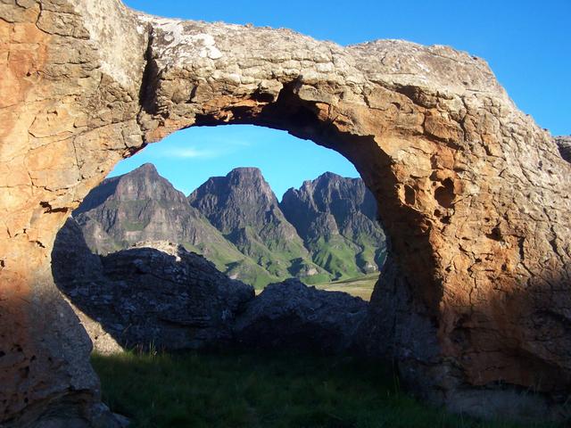 The highland regions of Lesotho, including the Maloti and Drakensberg ranges, are home to much of the population and serve as centers of Basotho cultural identity. Traditional villages are often located on hillsides or ridges for defense and better grazing access. Dwellings are typically simple round huts called mokhoro, constructed of stone or mud with thatched roofs, and are clustered together in small settlements. Because level ground is scarce in the mountains, terracing is used to create fields along slopes and valleys. The main subsistence crops include maize and sorghum, planted during the summer rainy season, while vegetables are grown in home gardens. In many areas, households also grow beans and potatoes as staple or cash crops suited to the cool climate. Livestock rearing, especially of sheep and goats, is an important complement to crop farming, providing wool, mohair, meat, and income. Some herders practice transhumance, seasonally moving flocks to high-altitude grazing areas during summer and returning to lower elevations in winter, where they stay in temporary stone shelters or huts built near grazing land.