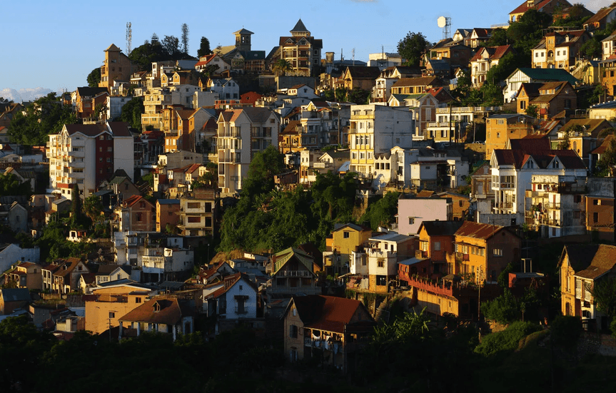 Antananarivo is the capital city of Madagascar, in the island’s Central Highlands. Overlooking the city, the Rova of Antananarivo palace complex was the center of the Merina kingdom from the 17th century. It features wooden houses and royal tombs. The pink baroque Andafiavaratra Palace sits in the nearby Haute Ville neighborhood. In the city center, heart-shaped Lake Anosy is ringed by jacaranda trees.