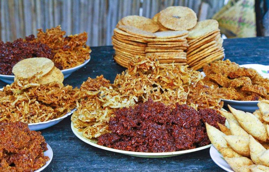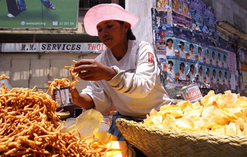 Madagascar's cuisine is a flavorful blend of indigenous ingredients and influences from Arabic, Chinese, French, African, and Indian cultures. Rice is the staple of most meals, typically served with laoka—a side dish of meat, vegetables, or legumes. Common proteins include zebu (a type of cattle), pork, chicken, and seafood, often cooked with aromatic spices like ginger, garlic, and turmeric. Leafy greens such as cassava leaves (ravitoto) and a variety of vegetables are key components of the diet, while condiments like spicy sakay relish and achards (pickled vegetables) add an extra kick of flavor.